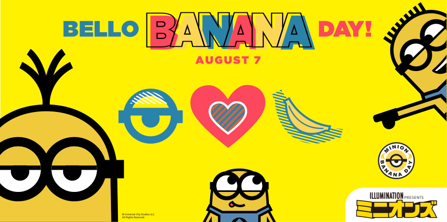ミニオンたちの大好物のバナナにちなんで、8月7日を「バナナの日 "MINION BANANA DAY"」として盛り上がるイベントとされています。
