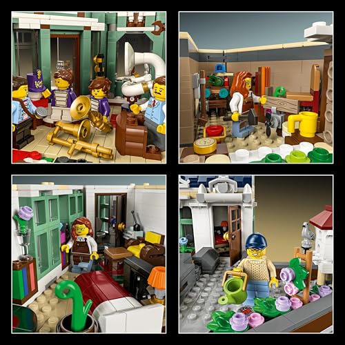 本セットには、1つはマーチングバンドの楽器を揃えた楽器店、趣のある家具店、そして居心地の良い家具付きアパートメントが登場します。そして、お店のオーナーや従業員、お客様など、活気あふれるミニフィギュア、その他多数のアクセサリーが含まれています。モジュール式なので、簡単に内部にアクセスできるのもポイントのひとつです。