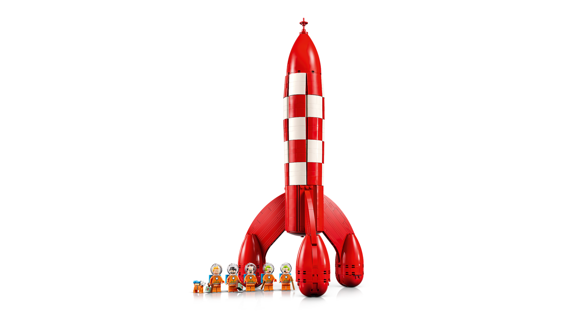 物語に登場するキャラクター6体が含まれており、宇宙服とヘルメット、酸素ボンベなどを装着したTintin®(タンタン)や Captain Haddock®(ハドック船長)、Thomson and Thompson®、Professor Calculus®などの合計5体のミニフィギュア、そして Snowy®(スノーウィ)のどうぶつフィギュア(Tintin®とCaptain Haddock®には無線機も付属)が含まれています。