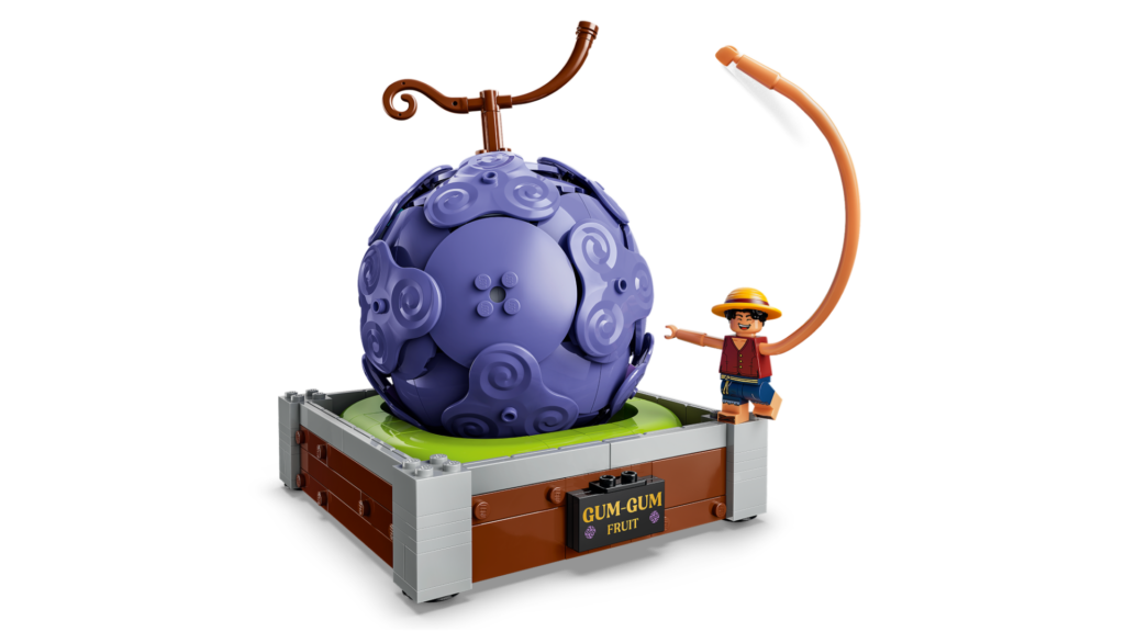 Netflix シリーズ実写版「ONE PIECE」に登場する伝説の果実であり、モンキー・D・ルフィの能力の原点である「ゴムゴムの実」をレゴ®ブロックで再現したセットです。渦巻き模様の果実の上部を開くと、フーシャ村で暮らしていた子ども時代のルフィが初めて能力に目覚めた象徴的なシーンが現れます。成長したルフィのレゴ®ミニフィギュアが付属しています。